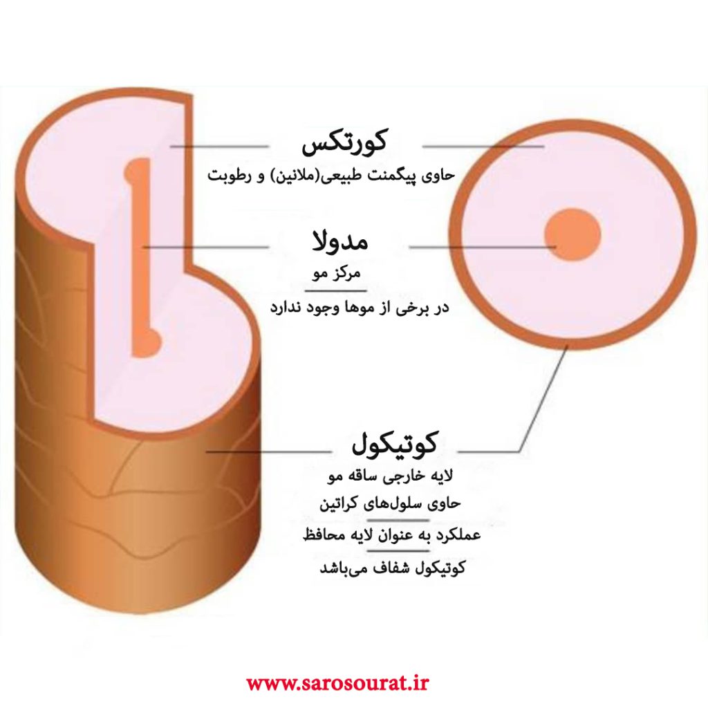 مدولا: در موهای ضخیمتر وجود دارد و به عنوان هسته درونی مو عمل میکند.